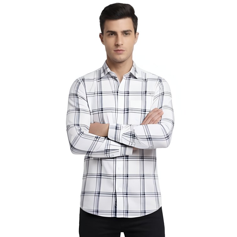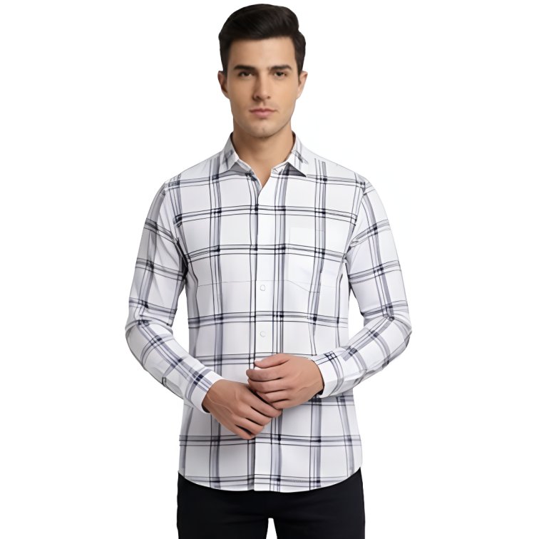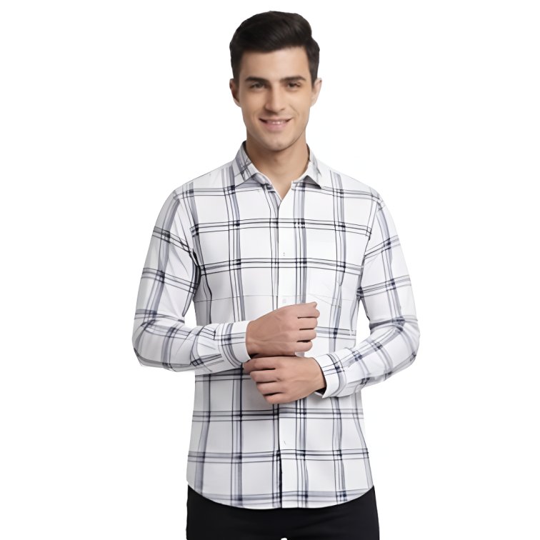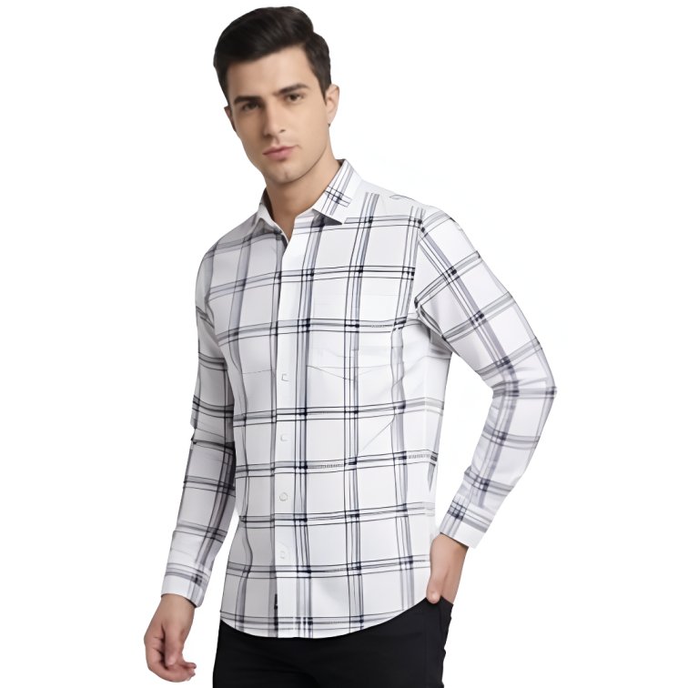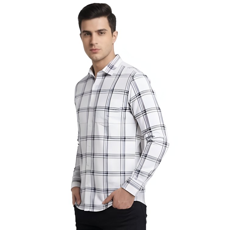 Premium Fabric White Checked Shirt For Men